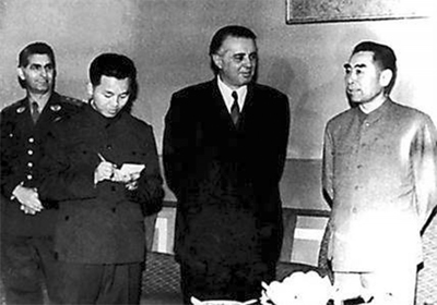 周恩来会见外宾。