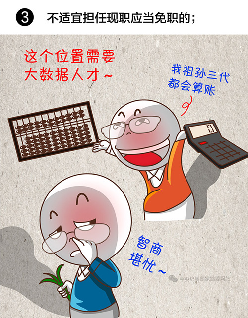 近日,中共中央印发了修订后的《党政领导干部选拔任用工作条例》,为新时代做好干部选拔任用工作提供基本遵循和制度保证。对此,中央纪委国家监委网站“一定之规”栏目发布漫画《领导干部有这8种情况,应当免去现职》,详解领导干部任免应当免去现职的八种情况。