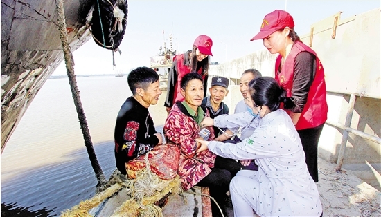 在台州市路桥区金清镇,渔业捕捞从业人员较多。针对渔民长期出海在外的实际,日前,金清镇组织由医务人员、公安民警等组成的党员志愿者到渔港码头开展免费义诊和平安指导服务。