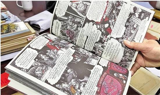 翻阅桌上的书籍,我们发现,有的外文本还有版画、插画,甚至还有一本希腊语全彩漫画版。“这意味着在西方国家《共产党宣言》传播更多样化了,受众更为广泛,年龄段也越来越小。”王景玉认为。