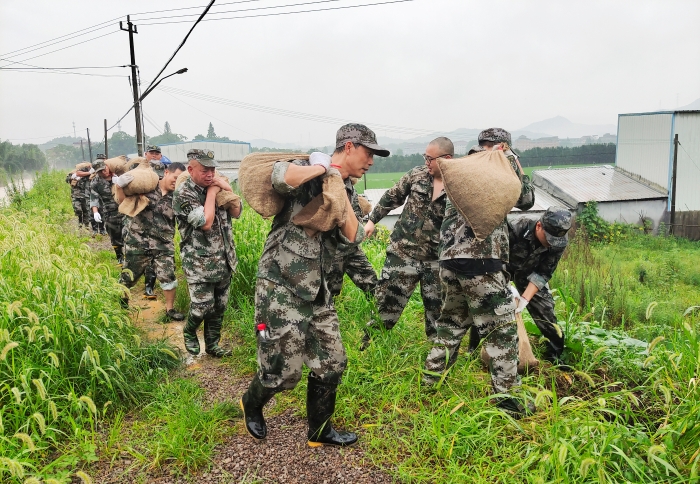 7月8日,桐庐县城南街道发现春江村河湾埠可能出现江水倒灌,立即组织党员干部、基层民兵,带领东兴村、湾里村等党员防汛应急志愿队,前往河湾埠,用沙袋巩固沿岸堤坝。