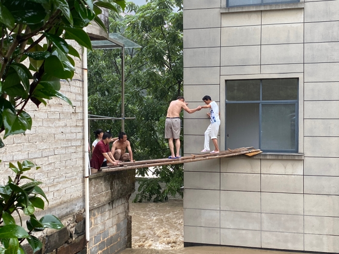“先救老人小孩,我先上!”7月7日清晨,天刚蒙蒙亮,淳安县宋村乡镜洪村干部就蹚着膝盖深的水搜寻被困村民。看到村民张中华家进水被困,村书记张三木带头架天梯入户营救老人孩子,争分夺秒成果解救12人。