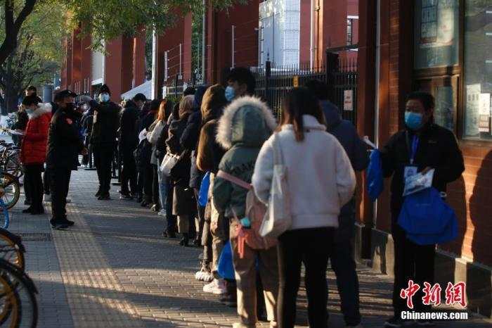 资料图:2020年11月29日,北京市东城区一考点外,国考考生排队等候入场。中新社记者 蒋启明 摄