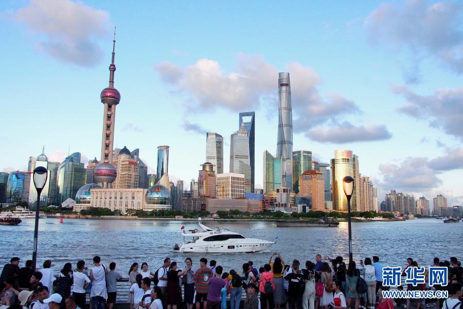 游客在上海外滩欣赏浦东陆家嘴景色(2019年8月2日摄)。新华社记者 陈飞 摄
