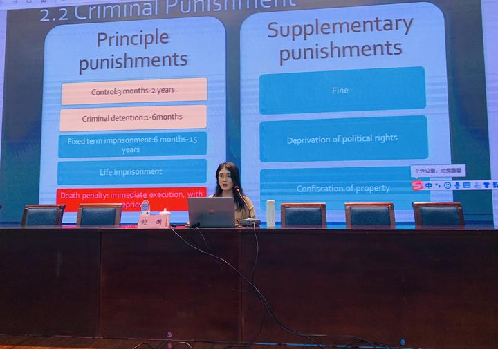 “Good afternoon everybody.it is a great hornor for me to make this little intriduction to China's laws,with the hope that every one of you could be ‘safe and sound’ during your stay in China.(大家下午好,非常荣幸为大家带来这次关于中国法律的小讲座,正如我课件题目所说,希望大家在华期间都能‘平安无虞’。)”11月28日下午,一堂全英文的中国法制课在绍兴文理学院河西校区举行,来听课的是绍兴文理学院的300多名留学生,授课老师是诸暨律师鲍国。