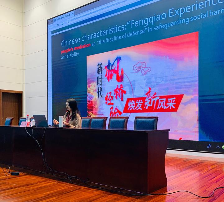 鲍国告诉记者,这是她第一次给留学生讲解法律法规,刚接到任务时也有些紧张,前后断断续续花了五六天的时间做了PPT。“前不久,得知‘枫桥经验’首次以中共中央全会审议通过的形式写入《决定》,我也希望有更多人了解诸暨‘枫桥经验’,于是在PPT中加入了一些相关内容。”